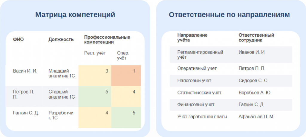 В матрице компетенций отмечают компетенции сотрудников или ответственных по направлениям. Так новичок сразу понимает, к кому обращаться с вопросами. Важно, чтобы матрица была удобной, актуальной и доступной, чтобы экономить время и не отвлекать коллег.
