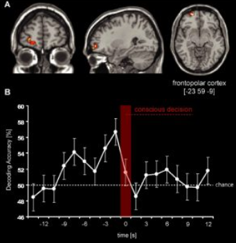 Например, лето, вам жарко, хочется выпить стакан холодной воды. Вы почувствовали желание попить воды, пошли, налили стакан, удовлетворили потребность. Эксперимент Либета показывает, что за 800 миллисекунд до принятия решения мозг уже знает, что вы этого захотите. Он знает, но еще не сообщает об этом.