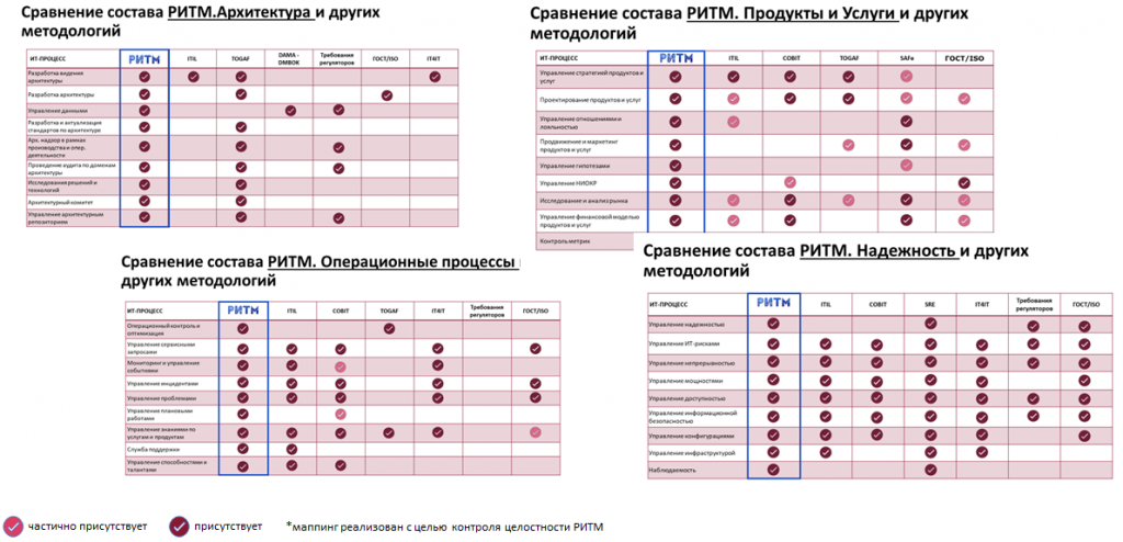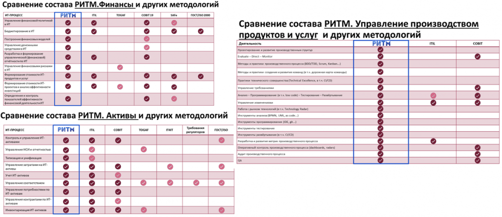 Можно сказать, что мы переизобретаем велосипед, но перед этим был проведен сравнительный анализ существующих методологий. Я лично изучал COBIT, ITIL и ITAM в части управления активами, сопоставляя процессы, заложенные в РИТМ, с тем, что отражено в других подходах.