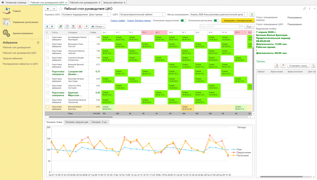 11. Планирование загрузки ЦФО в разрезе месяцев и дней.