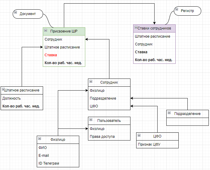 В организации имеется иерархическая структура предприятия, но для расписания используется структура центров финансовой ответственности (ЦФО).