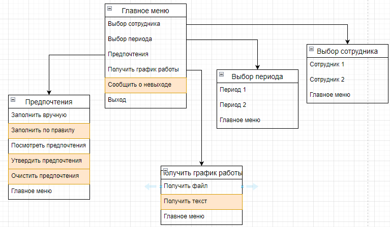 • Исключить присутствие двух сотрудников, работающих в разных подразделениях, в один день.