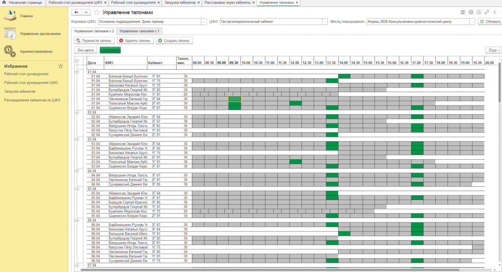 19. Ручное назначение кабинетов.