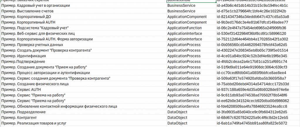 Всю созданную модель можно выгрузить в Excel и на ее основе получить GUID’ы, с которыми затем можно работать как угодно.