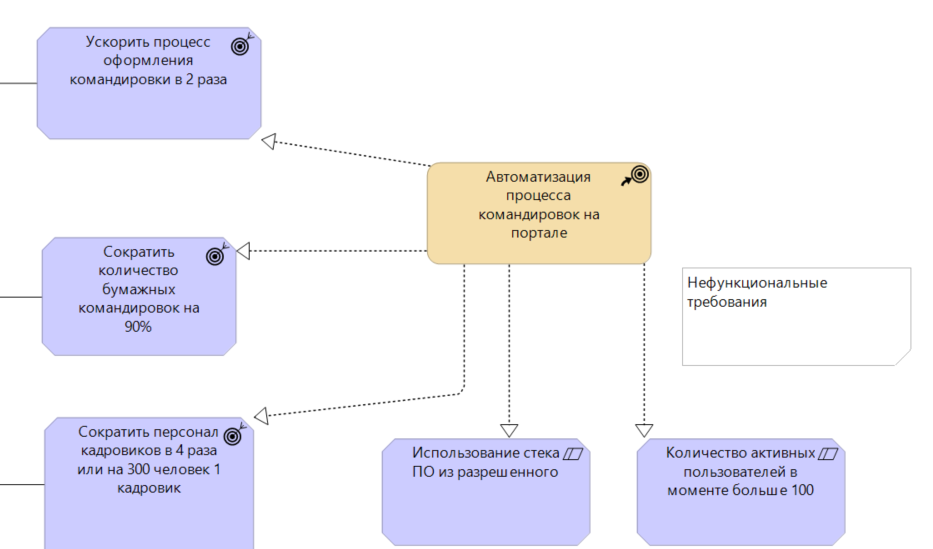 Это уже прозрачные и проверяемые цели. Мы можем понять, как их достичь и как оценить результат: например, автоматизировав процесс командировок через корпоративный портал.