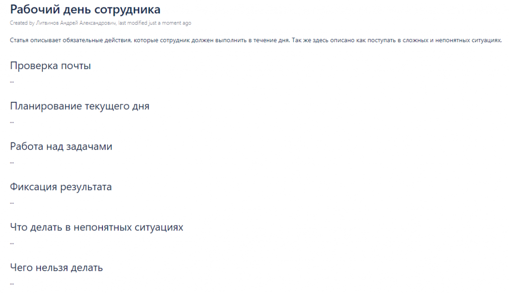 Правила ведения каждой из таких документаций сильно отличаются, поэтому я приведу несколько простых и универсальных примеров, которые помогут понять общий подход к работе с любой базой знаний.