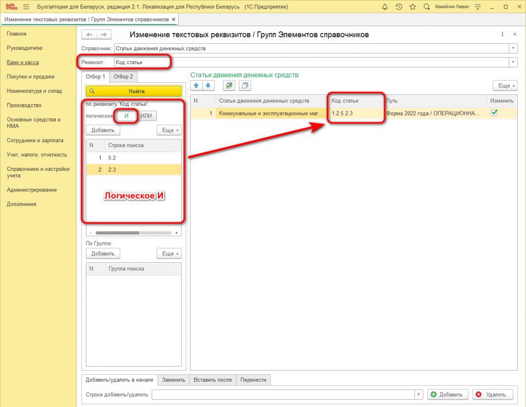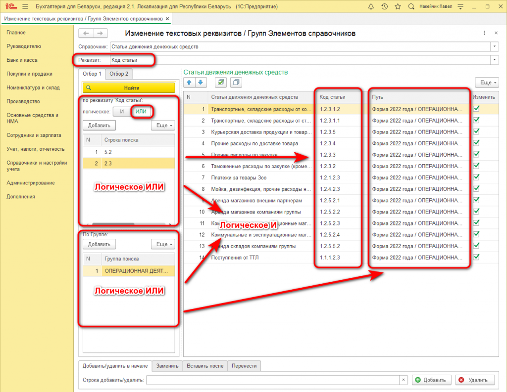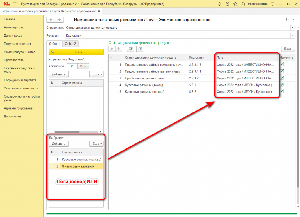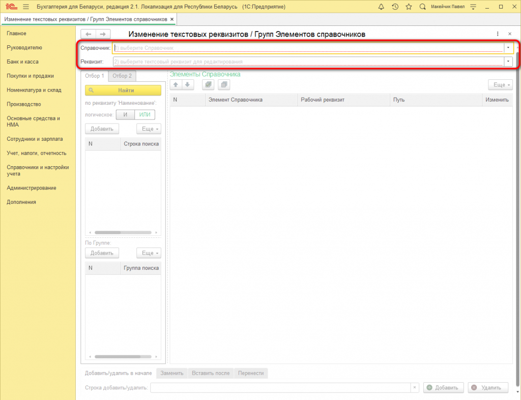 В уже отобранных элементах Справочника можно выбрать строки, которые необходимо изменить (справа колонка "Изменить"):