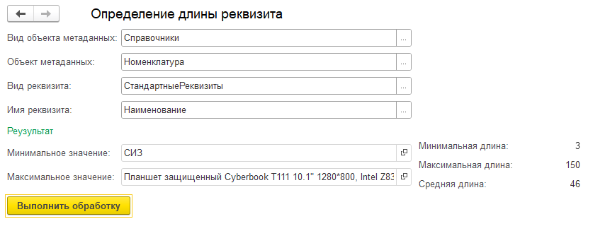 *Анализ длины значений - вычисление минимальной, максимальной и средней длины реквизита.