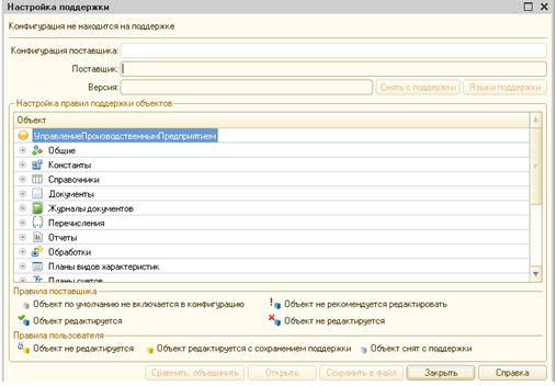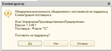 Рис.7. Постановка на поддержку объекта "УправлениеПроизводственнымПредприятием"