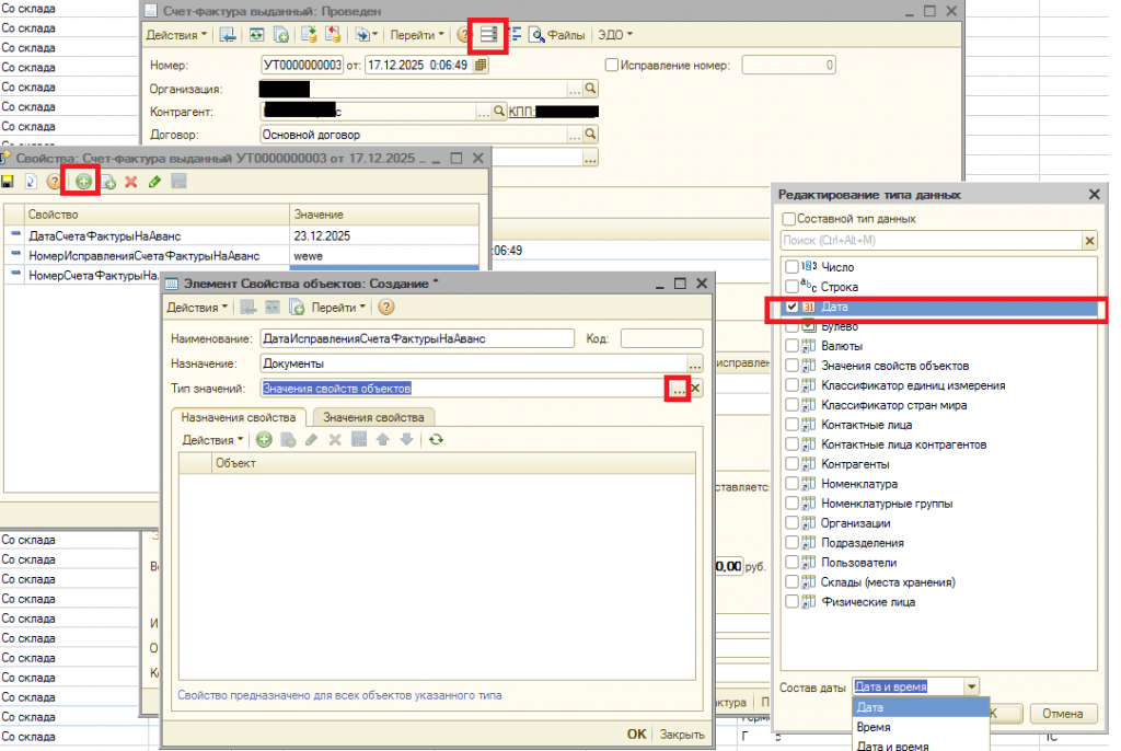 - ДатаСчетаФактурыНаАванс Тип Дата