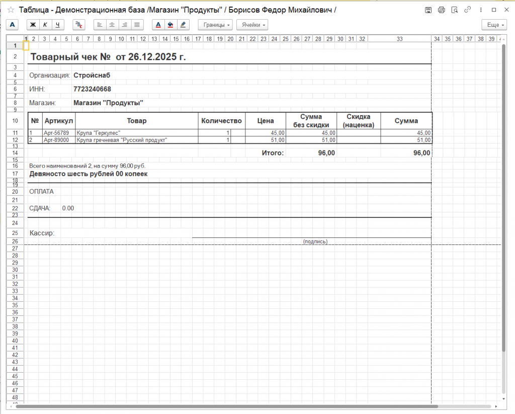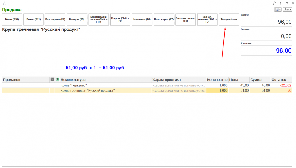 Печать товарного чека из РМК (без скидок) Розница 2.3