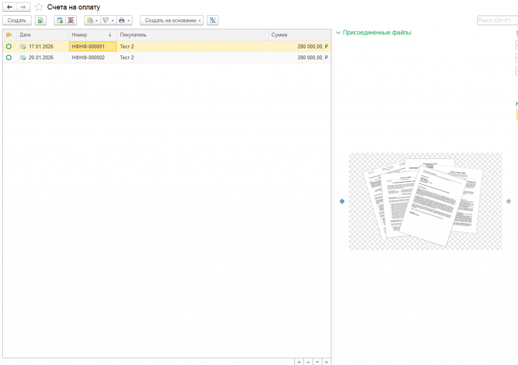На рисунке ниже представлены примеры отображения прикрепленных файлов счетов на оплату после подключения расширения.
