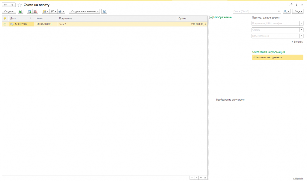 Форма списка счетов на оплату.