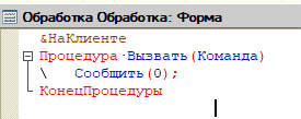 К примеру, у нас есть процедура - Сообщить, которая выводит 0 при нажатии в основном коде