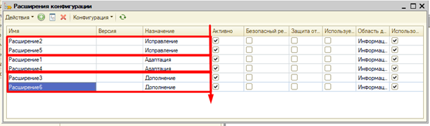 Порядок расширений – это важно и его нужно учитывать, он идет по алфавиту, в разрезе назначений: первые идут исправления, после них адаптация и последние дополнения. Как они делятся и что это такое, можно посмотреть на ИТС. В целом без разницы, что указывать, но помните - это на вашей совести.