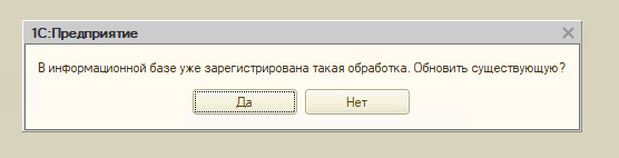Обработка легко подключается с помощью механизма авторегистрации. Достаточно открыть файл обработки под полными правами через меню "Файл" - "Открыть..." и выбрать файл обработки.
