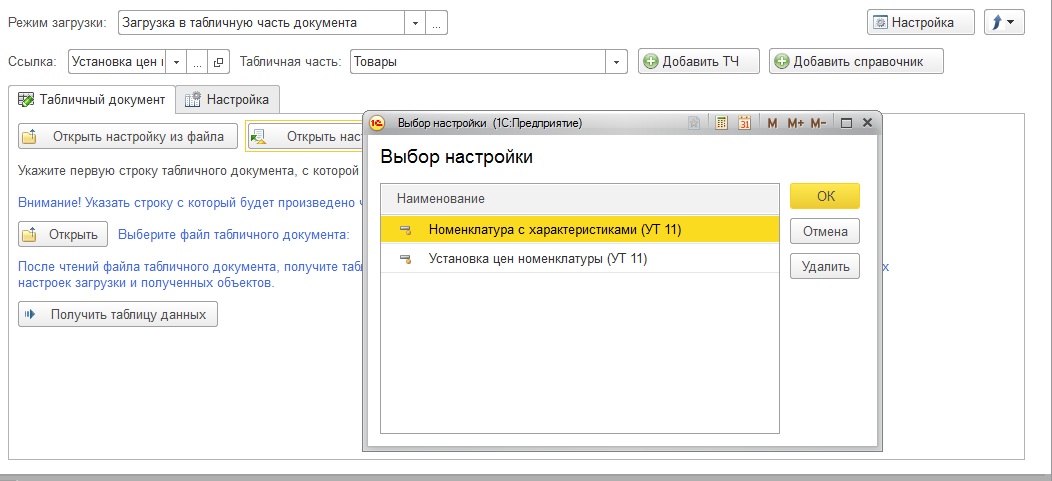 - Добавлены две предопределенные настройки загрузки для УТ 11, на их примере можно изучить общие принципы настройки обработки: