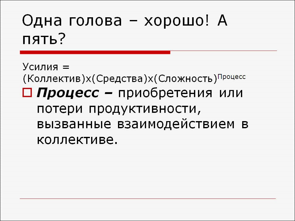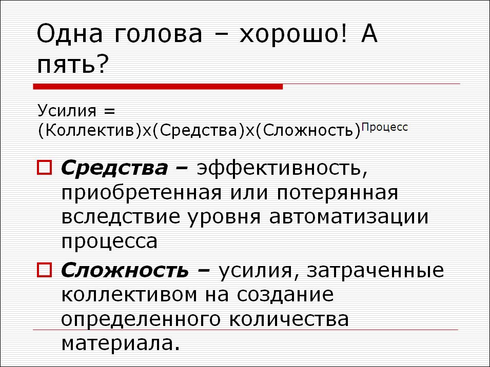 Коллектив, средства и сложность – это множители. Процесс – это степень.