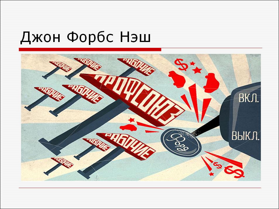 Джон Форбс Нэш (фильм «Игры разума»). Суть в том, что нобелевский лауреат по экономике много внимания уделил теории «Игр с ненулевой суммой». Нулевая сумма – это когда один выиграл, другой проиграл. Игры на Forex – это игры с отрицательной суммой – не важно, выиграл ты или проиграл, ты все равно платишь комиссию. А есть игры с положительной суммой. Сумма выигрыша может быть больше, чем сумма проигрыша. Простейший пример этой теории – это забастовка профсоюзов с требованием повышения заработной платы специалистам перед работодателям. Если они не договорятся – проиграют обе стороны. Если же каждая из этих двух групп действует чуть-чуть в интересах другой группы, то выиграют все (они могут договориться).