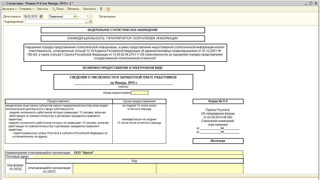 Обновлена печатная форма отчета и выгрузка согласно приказу Росстата: от 24.09.2014 № 580