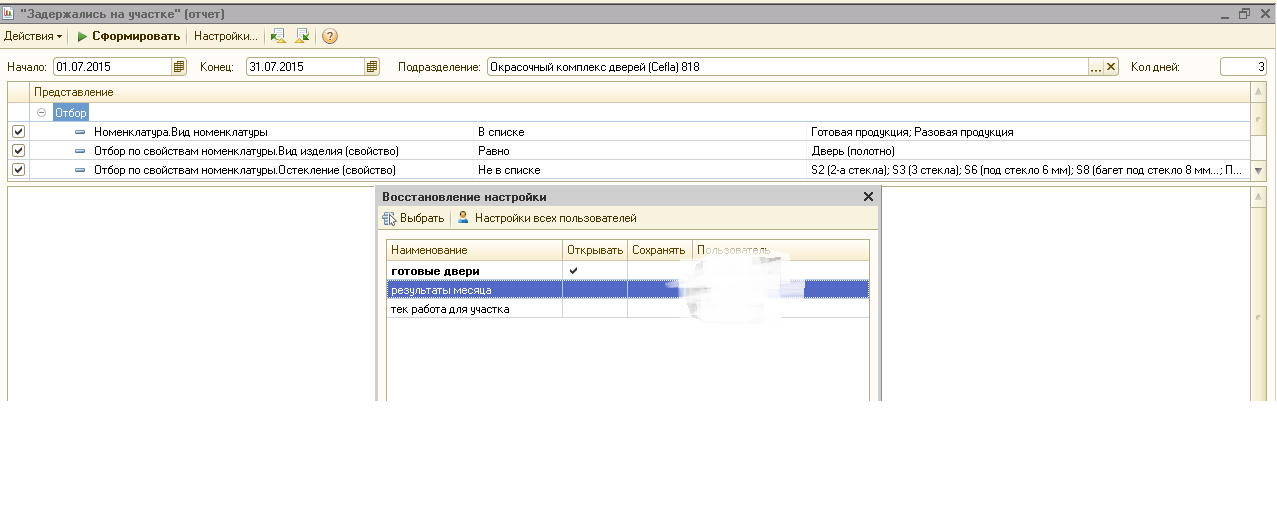 1. Верхние настройки - Период, Подразделение и Кол. дней задержки используются для предварительного выбора данных из регистра Учет затрат и не могут быть изменены в Компоновке.