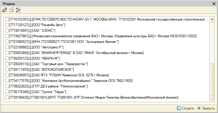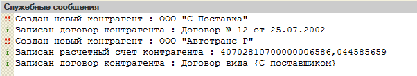 Можно отметить сразу всех контрагентов, а можно выборочно. На этапе обучения работе с программой можно отмечать новых контрагентов выборочно, чтобы проверять результат. При нажатии на кнопку "Создать" в окне сообщений отобразится результат :