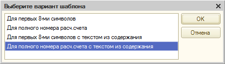 Если выбирать вариант "Для полного номера расч.счета" то при этом программа может привязать контрагента и договор к номеру счета. Для прочих операций программа привяжет аналитику и без указания полного расчетного счета. В данном случае выберем вариант : "Для первых 8-ми символов с текстом из содержания"