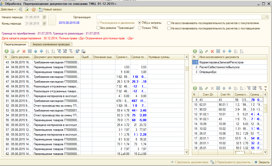 Обработка позволяет узнать, что изменилось в результате перепроведения документов: