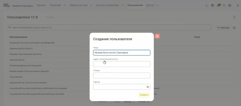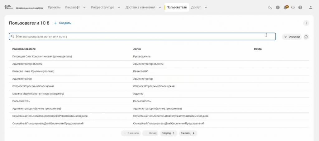 Пока нет, но в планах поддержать все возможности аутентификации – на том уровне, как это есть сейчас в 1С:Предприятии. Создавать пользователя из 1С:Управление ландшафтом в Active Directory и наоборот, автоматически добавлять его в базы при появлении в домене – пока не планируется.