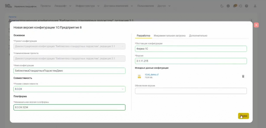 - гибкие сценарии доставки - поддерживаются одиночные и групповые обновления, обновление на сервере, а также динамическая реструктуризация без простоев (с версии 8.5.3)