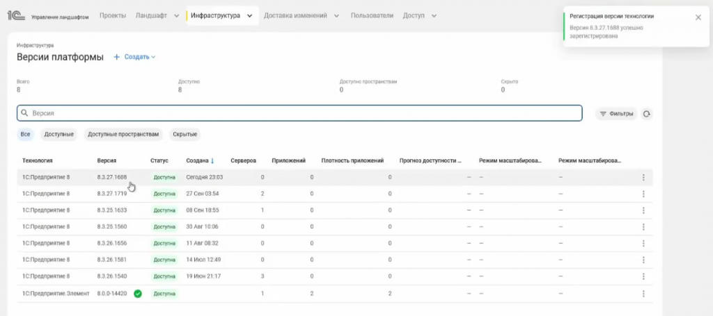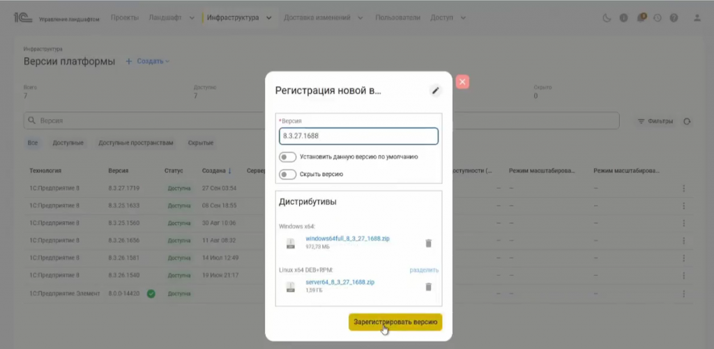 - единое управление версиями платформы - администратор контролирует все установленные версии и их соответствие на разных узлах из одного интерфейса