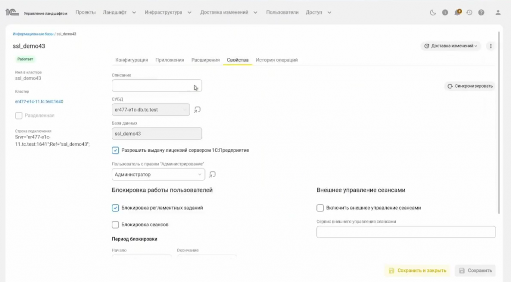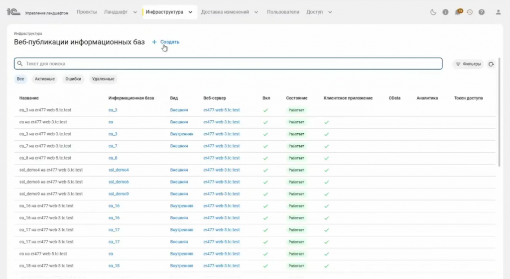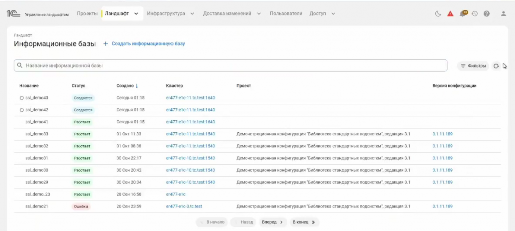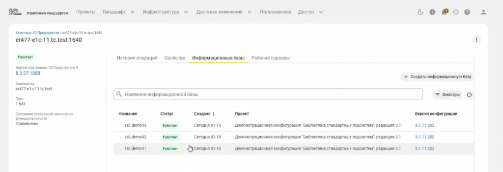- удобный контроль состояния - администратор сразу видит статус развертывания и готовность баз к работе в едином интерфейсе