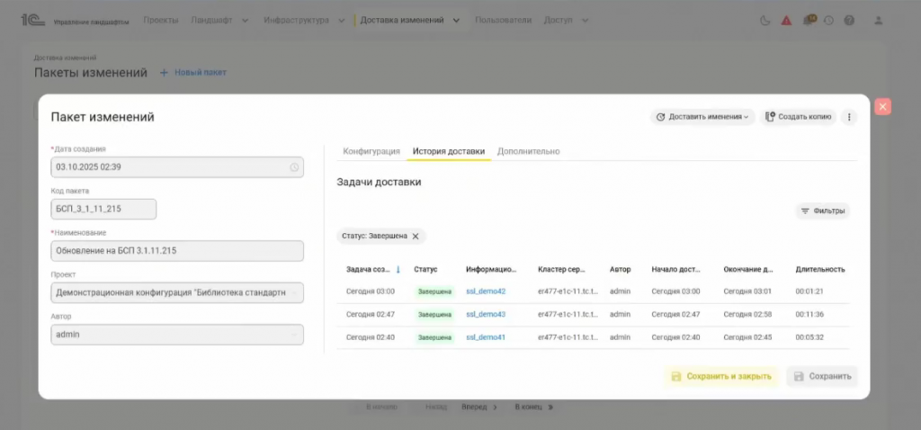 - полный контроль и прозрачность процесса - история доставки фиксирует статус каждой операции, обеспечивая уверенность в успешности и корректности установки расширений