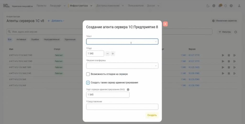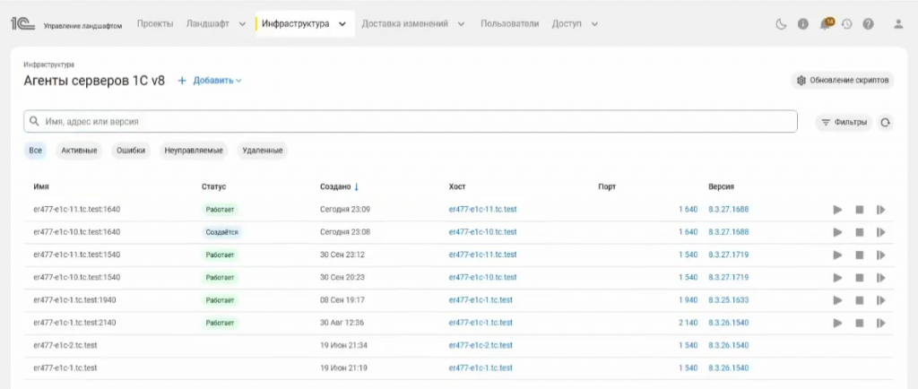 Чтобы использовать Ansible или другие сторонние инструменты, нужны узкоспециализированные специалисты, которые умеют настраивать скрипты, шаблоны, плейбуки и так далее. Это дорого и рискованно – если такой специалист уйдет, компания не сможет это полноценно использовать и развивать. У 1С:Управления ландшафтом порог вхождения намного ниже, а вся настройка происходит в красивом удобном интерфейсе. Все, что требуется – это установить агентов и пользоваться. Простые рутинные задачи полностью автоматизированы.