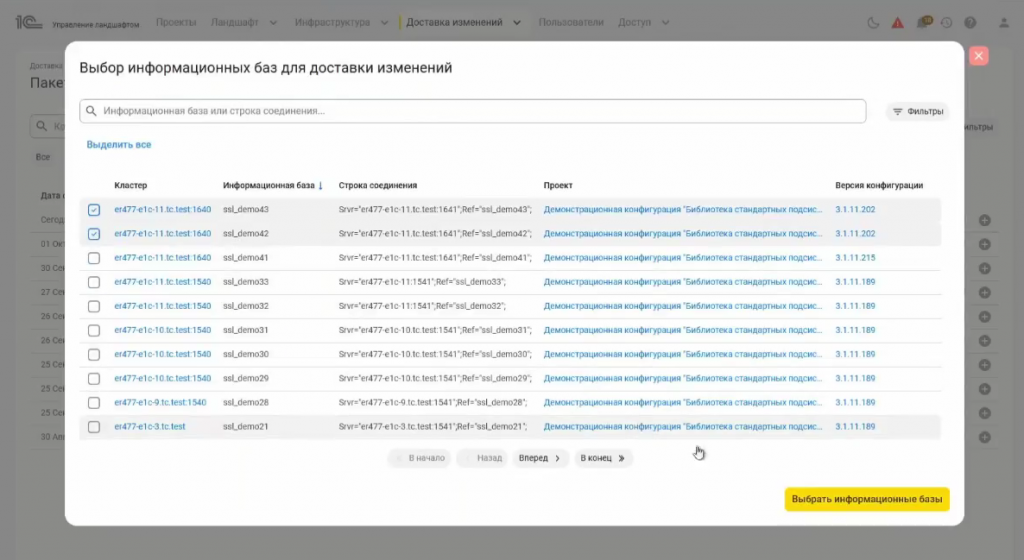 - централизованное управление обновлениями - все конфигурации, расширения и версии объединяются в единые пакеты, что позволяет выполнять массовые обновления десятков баз из одного интерфейса