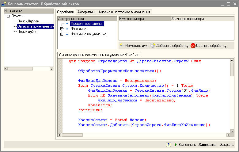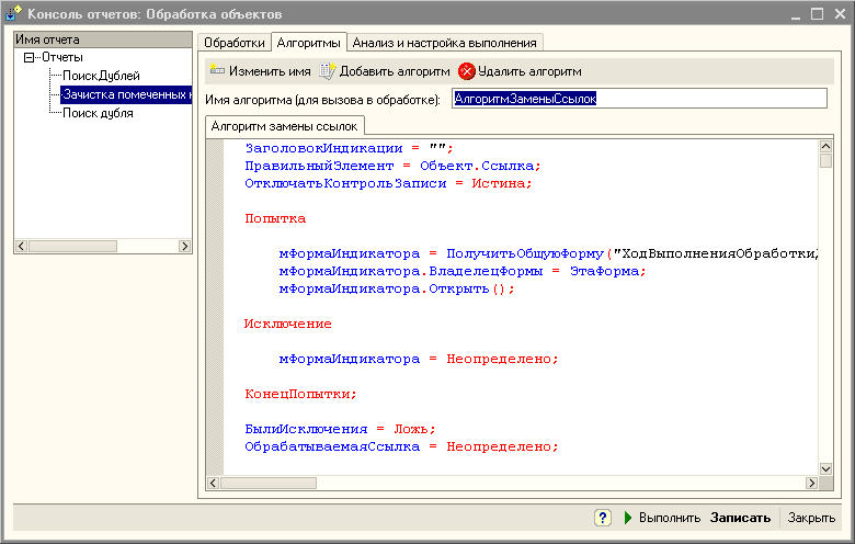 4. Добавлены алгоритмы. Процедуры используемые при выполнении обработки теперь можно выносить в отдельный алгоритм. Так же отработанные алгоритмы легко переносить в алгоритмы конфигурации "Конвертация данных 2.0"