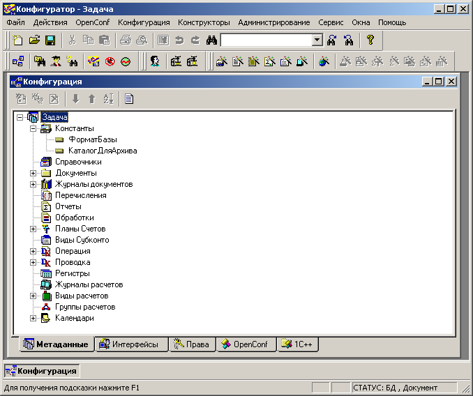 4. Скопировать из информационной базы #1 две константы: <<ФорматБазы>> и <<КаталогДляАрхива>> в свою рабочую базу (при этом возможно потребуется настроить права пользователей).