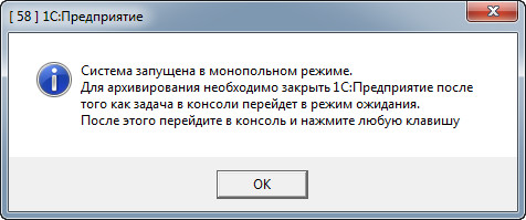 Архивирование возможно как в монопольном режиме (БД при этом закрывается) так и в разделенном режиме (что полезно при сетевой работе.