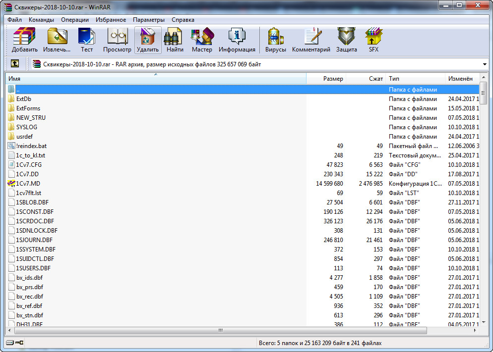 Обработка при помощи WinRar архивирует каталог с БД.