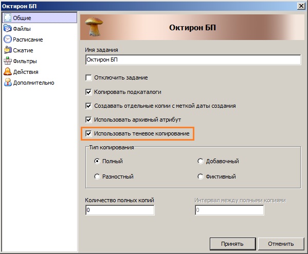 В результате наше дополнительное действие "До резервного копирования" будет выглядеть так: