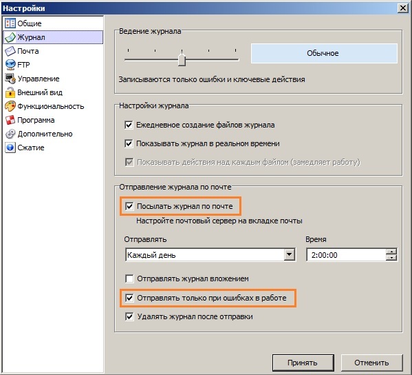Не забудьте настроить отправку журнала по электронной почте в случае возникновения ошибок и вы всегда первым узнаете что архив не создался.