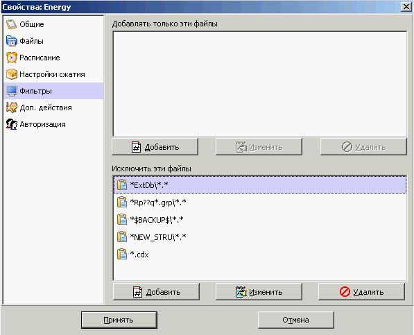 На закладке "Файлы" в "Источнике" указываем путь к промежуточной папке, а в "Пути назначения" папку для хранения архивов.