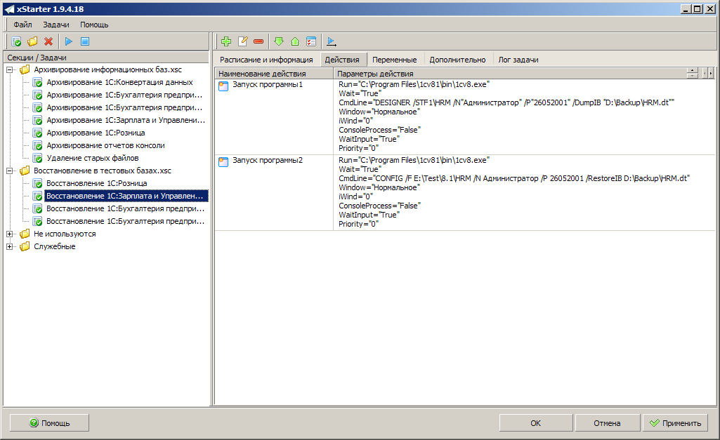 Резервное копирование информационных баз 1С:Предприятие 8 с помощью xStarter